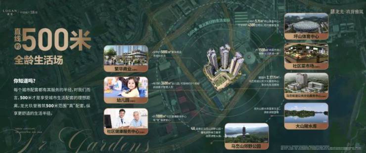 约500米,是享受城市配套的舒适距离,也是生活半径的高频距离。