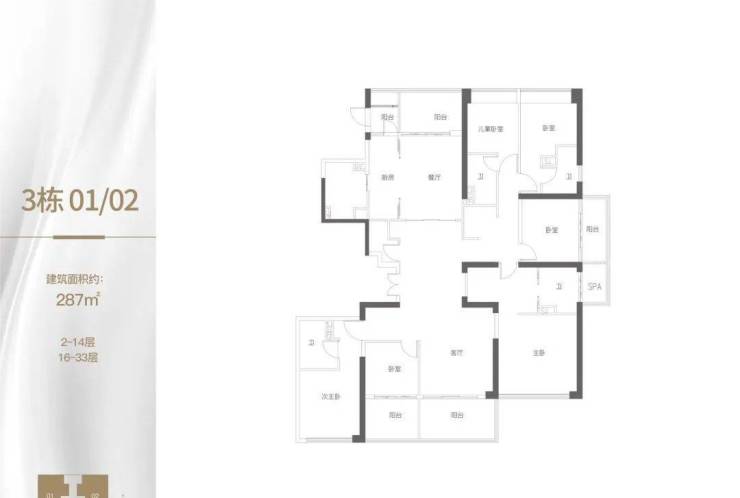 建面约287㎡5+1房
