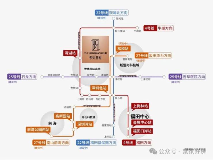 交通配套:悦见倾湖家门口就是4号地铁线“清湖站”,5站到深圳北站,6站到南山,8站到福田,另外还有27号地铁线“松和站”距离约1.3公里,正在建设中。