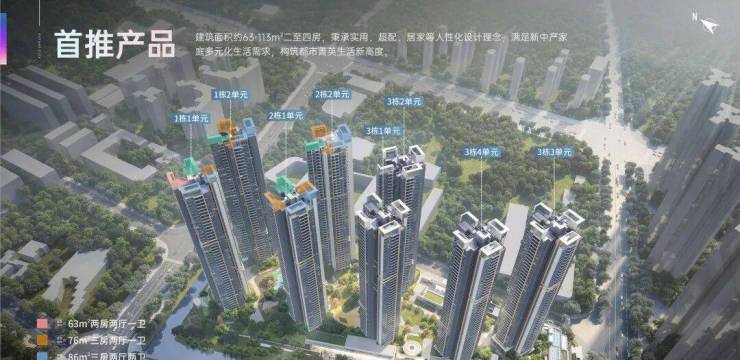 建筑面积约63-113㎡二至四房,新政后首批新规户型,秉承实用、社交、居家等人性化理念打造,赋予空间更多想象,满足现代家庭需求