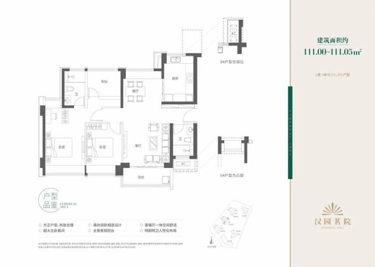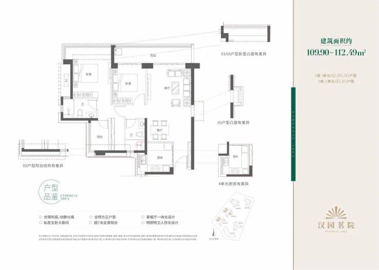 汉园茗院以改善型产品为主,户型面积包括109-112㎡三房两厅两卫、121㎡四房两厅两卫、157-159㎡五房两厅三卫和168-169㎡五房两厅三卫。