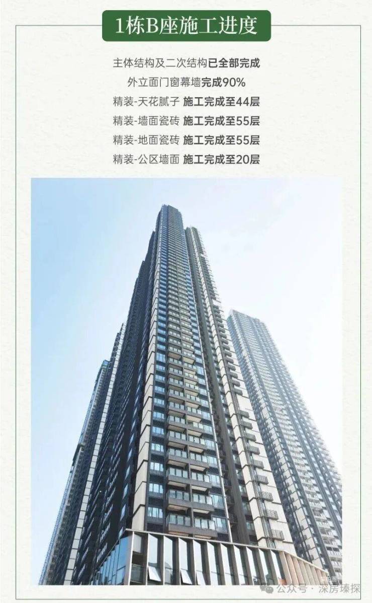 根据京基璟誉府官方公布的家书进度来看,项目主体都已经全部封顶,门窗框架也都已经做好,目前正在做室内精装,合同约定是在2026年10月份带精装交房,按这个建设进度来看,准期交付应该是没问题。