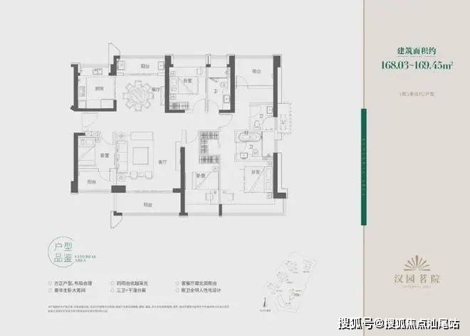 A区168㎡户型 五房三卫