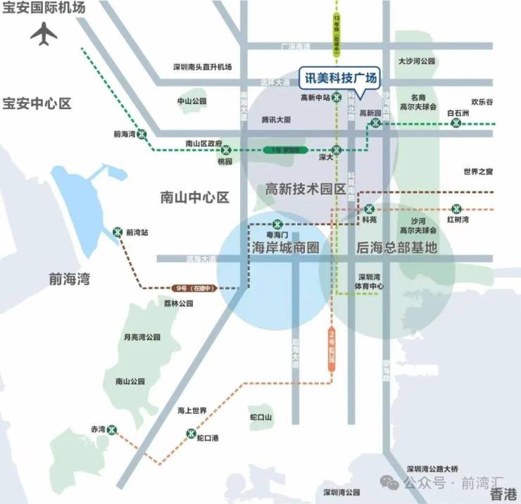 园区位于深圳市高新区中区科苑路旁,双地铁优势,地铁13号线高新中站唯一无缝接驳项目(预计2024年下半年通车),园区B1层无缝接驳地铁13号线A出口 ,距离1号线步行仅需5-8分钟,交通便利,四通八达。所属区域为我市核心科技金融产业聚集地,办公研发氛围浓厚。