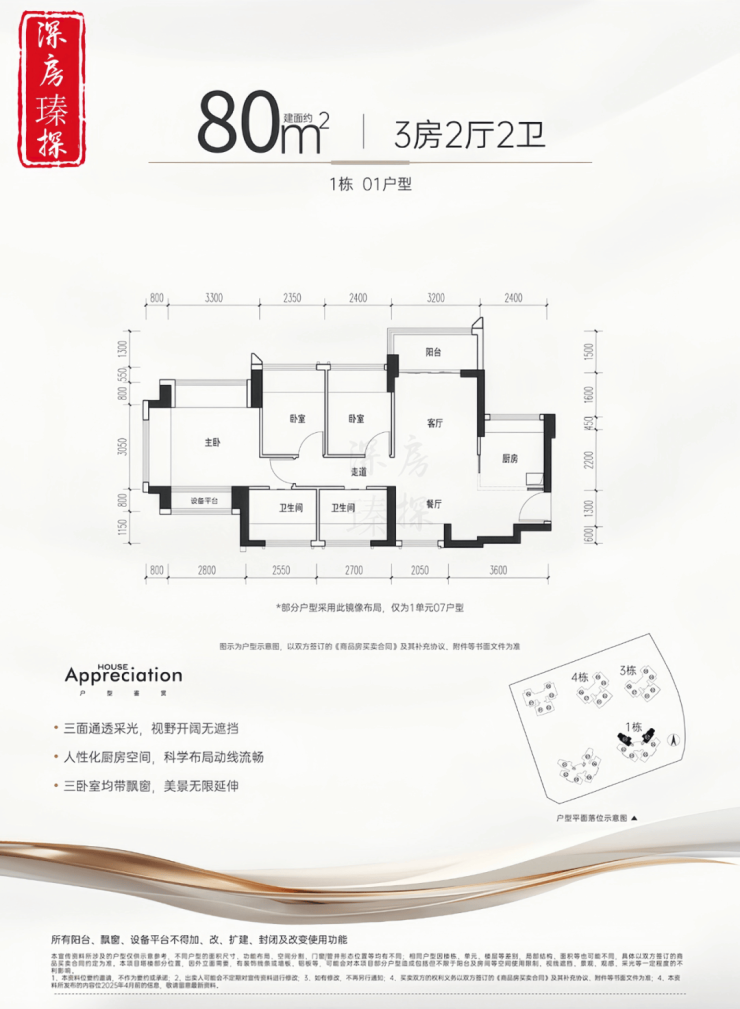 龙华观澜,金光华溪山禾玺御府于2025年5月21日取证入市,本次首推1/3/4栋,面积有75-80-83-85㎡的3房2厅2卫,105㎡的4房2厅2卫户型,共708套房源,备案均价4.62万/㎡,备案单价4.24-5.09万/㎡,总价319-535万/套,合同约定在2027年9月份带精装交房。