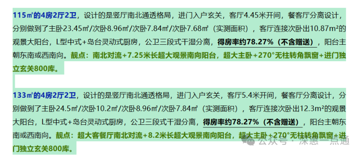 【颐安乐城三期】作为新规之后建设的楼盘,其户型设计颠覆了颐安集团以往的传统,采用全新的2.0+户型设计,得房率高达100%,83平做到了3房2卫,99平做到了4房2卫。所有单位均为3梯6户,确保每一户都是全南向户型,采光充足。这里需要注意的是两点,其中第一点栋与栋之间楼间距只有15米,1栋会好点距离二期楼栋24米,主要是影响115-133㎡户型的朝北房间会有对视,阳台客厅方向不影响,然后1栋的02以及4-6栋03的83-99㎡侧面景观会有一点点影响!