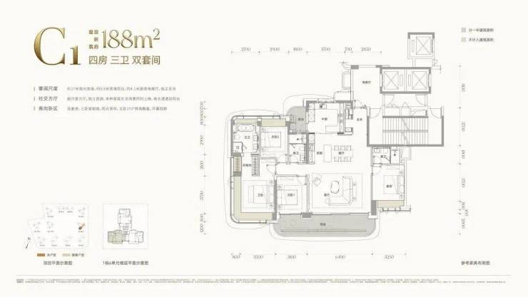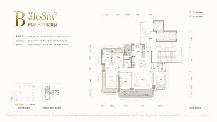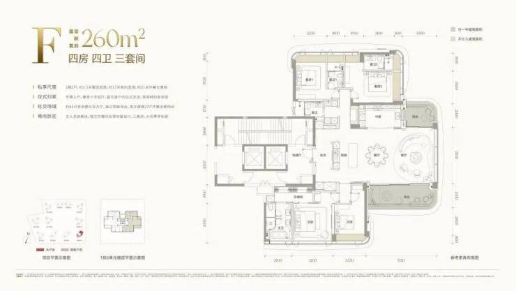 同样是三套房设计,比245㎡更牛的地方在于,这个户型落位在整个观潮府最好的位置,位于东南角,全盘只有40套。