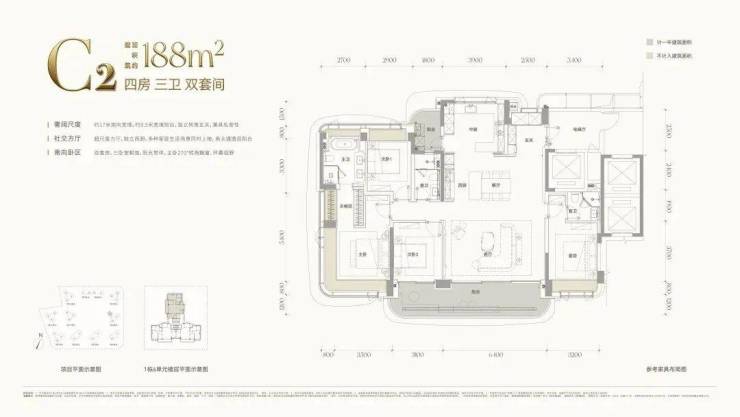 这个面积段比168㎡多了20㎡,核心不是多了房间,而是在168㎡的基础上,把每个空间都“放大”了。