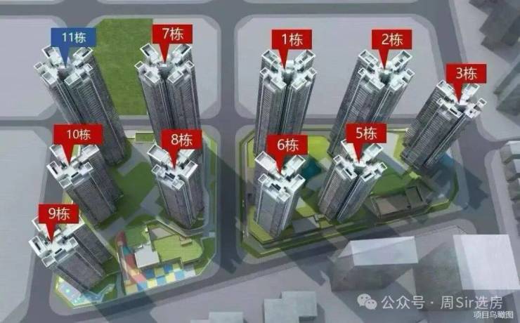 西区:占地2.2万㎡,容积率5.16,涵盖住宅、商业、教育及基础设施。建筑包括:7栋47层3梯6户;12栋46层3梯6户;8栋32层2梯5户;10/11栋32层2梯6户;9栋为幼儿园。