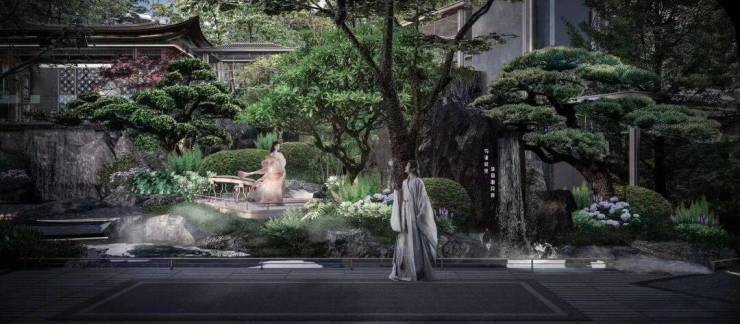 设计方面采用点阵式布局,项目以岭南建筑美学理念,打造岭南东方诗意园林景观。