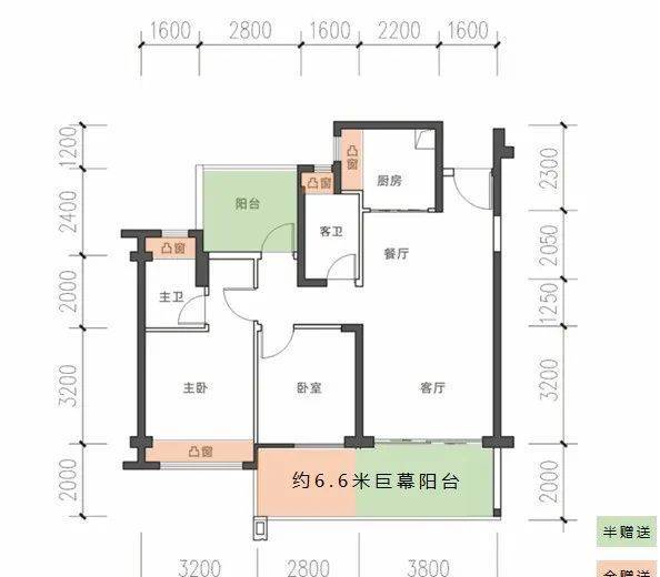 93㎡两房两厅两卫:拥有6.6米面宽大阳台,区域稀缺,全明南向布局,双卫舒居
