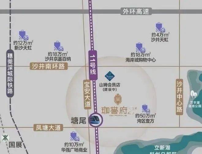 商业配套:鸿荣源珈誉府,自带50万㎡壹方奥特莱斯商业,汇集了壹方+奥莱的商业模式,在项目北侧还有万丰海岸城近18万㎡的购物中心,另外还有山姆会员商店在建,这个片区以后也将会是整个沙井最高端最集中的商业购物中心。