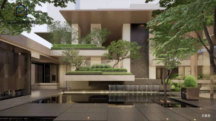 【中央车站】:约 1000㎡社区大堂北侧落客区,与地下车库无缝衔接,设花园月台,主入口设悬浮立体门院,仪式感十足。