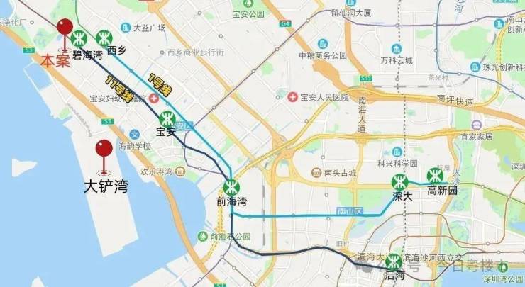 项目与地铁11号线碧海湾站无缝衔接,距离地铁1号线西乡站约700米,交通便利,是占据前海核心位置双地铁的优势资源。