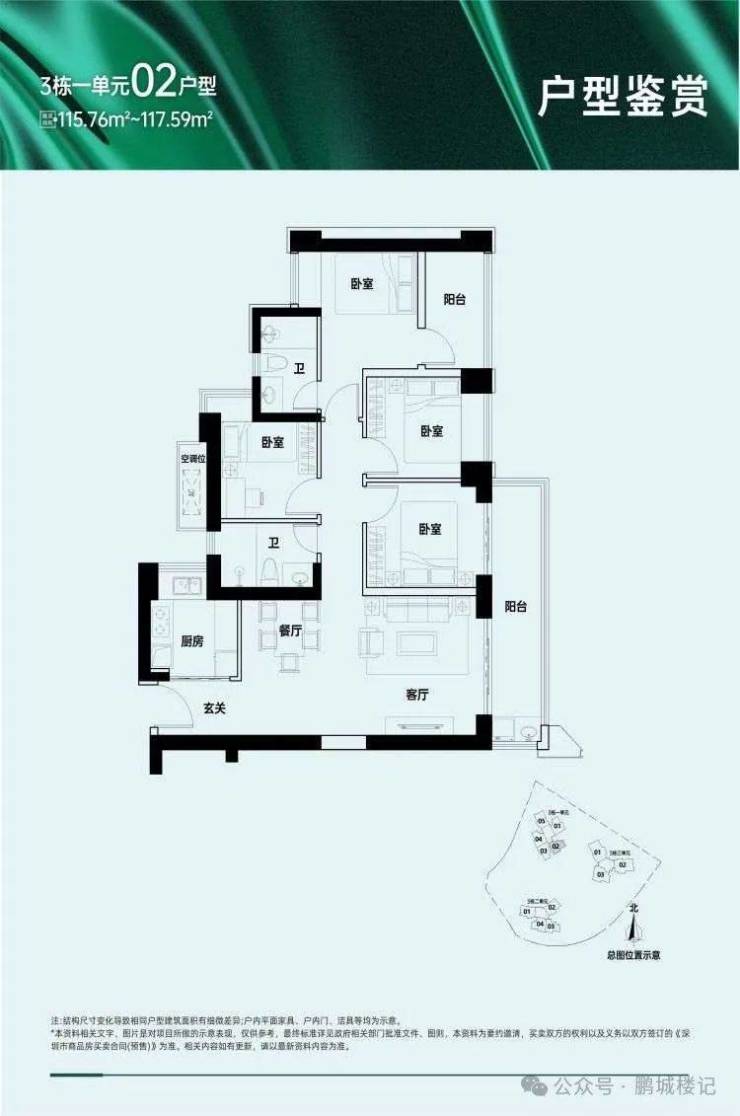 3、楼盘户型图与样板间实拍图所示平面仅供参考,具体因楼栋、楼层的差别,局部结构、面积等存在不同,不构成要约内容。户型图与样板间实拍图所示家具和电器配置仅供参考,不作为交付标准,最终以买卖合同为准。