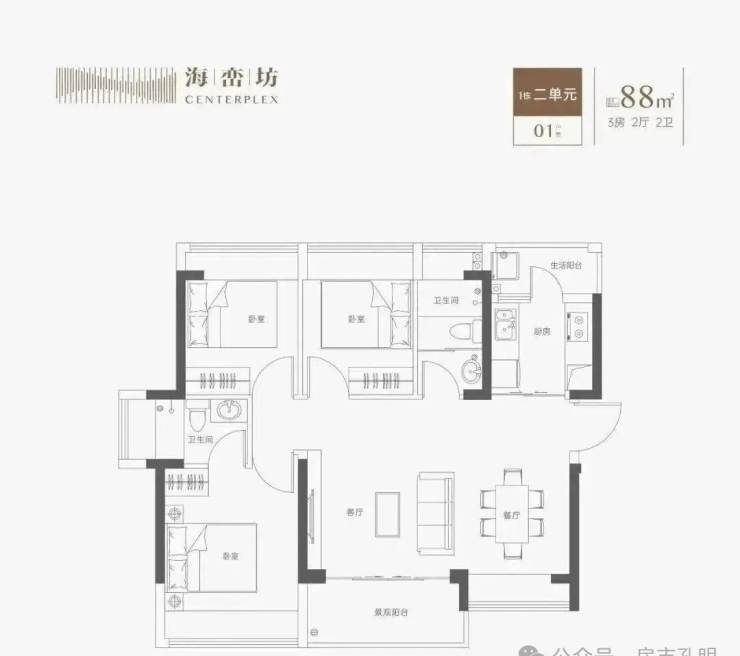 海峦坊秉承对阳光和清风的尊重,匠心打造南北通透格局,与清风为友,与阳光作伴,让阳光与清风,编织关于家的梦想。户型科学布局,动静分区,生活的两种模样各自美好;餐客一体,延伸宽敞空间,盛放一家人欢乐时光;独立套房主卧,自成一方私密奢雅天地。