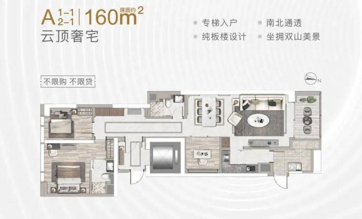 160-220㎡ 2-3+1房(专梯入户)