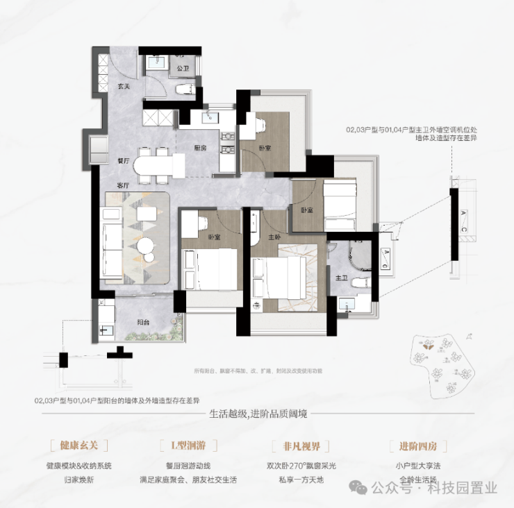 2、双卧室270°飘窗 健康玄关模块