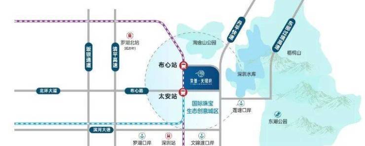 一湖三山五公园环绕,奢享城芯生态资源,项目东侧毗邻约60平方公里的深圳水库,可远眺约31平方公里的梧桐山,西倚围岭山,北瞰淘金山绿道,周边围岭公园、东湖公园、布心山公园、翠湖文体公园及东晓儿童友好公园五大公园。