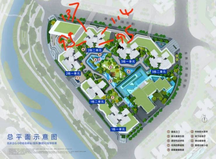 二期占地面积是3.07万,建面约20万,容积率6.6 ,共6栋住宅,一栋三层的商业,一所幼儿园围合而成,首推2栋2单元,面积段是95平三房,两个朝向,西南看2栋1单元的楼体,东南看花园,114平四房横厅东南朝向看花园,137平四房横厅西南朝向看龙岗河景观。