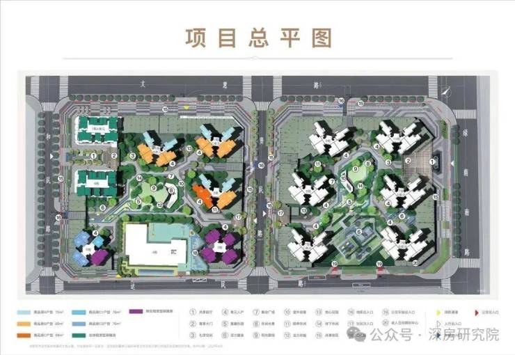 天健和悦府本次首推的是西地块,总占地面积约2.63万㎡,总建筑面积约18.43万㎡,计容建筑面积约13.56万㎡,容积率5,绿化率39.52%,共由7栋总高21-45层的住宅组成,其中1栋A座企业租赁住房33F,1栋B座商品房33F,1栋C座商品房21F,2栋住宅30F,3栋公租房31F,5栋商品房+公租房45F,6栋企业自持租赁住房33F,4栋是1所12班制幼儿园。