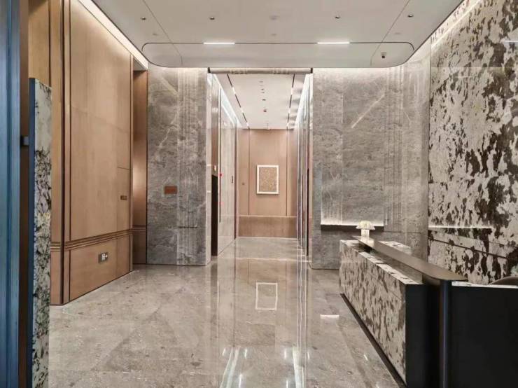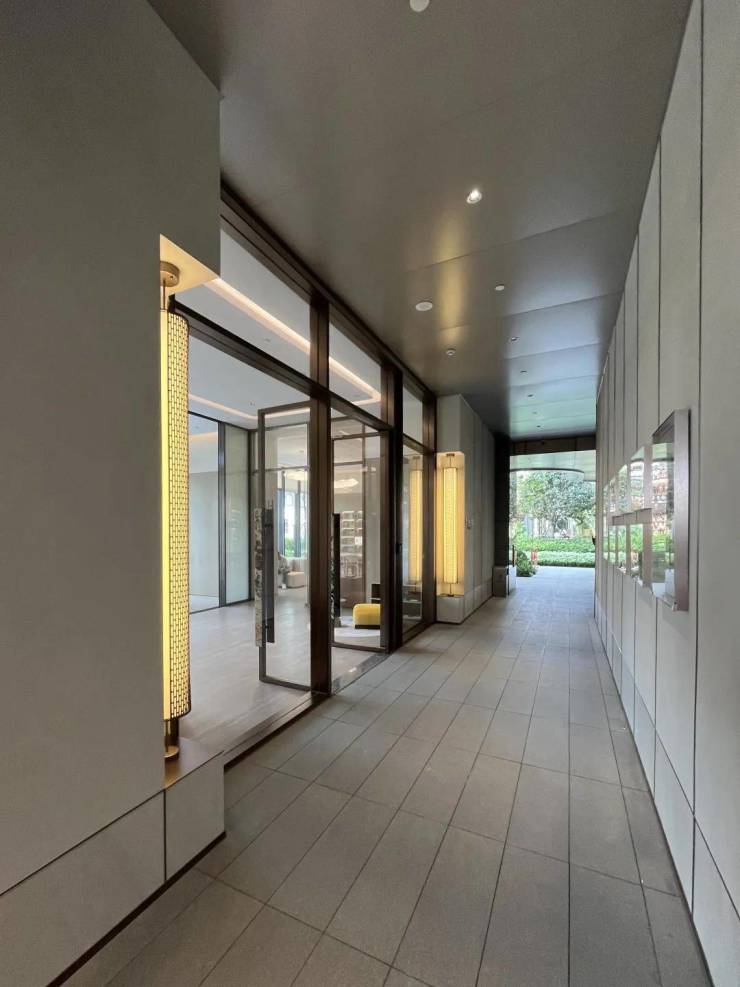宏发做的房子品质素来比较在线,项目入户大堂以精奢酒店风为主,采用大面积的透光玻璃和石材,实地看档次不错。