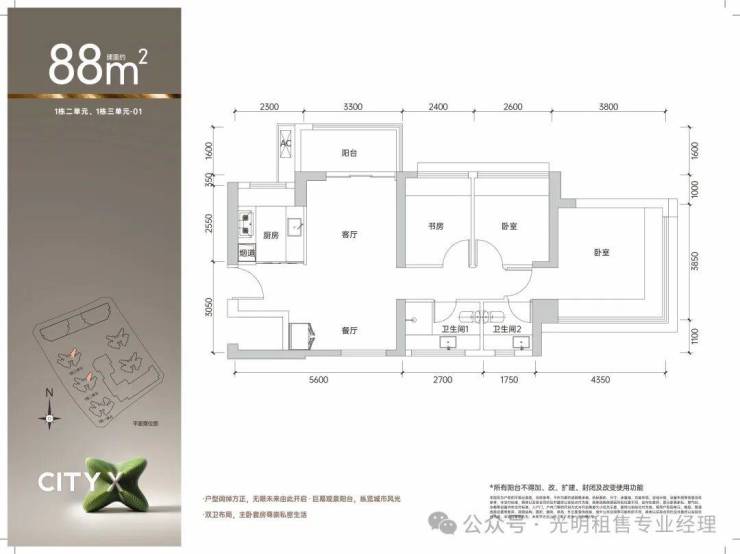 坐落大城心脏,前后双公园环抱(建设中),核心居住区,入则宁静出则繁华,静谧宜居。首推1栋二单元建面约88-117㎡3-4房2卫,私享大城配套。