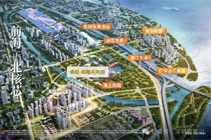 卓越·前海未来城(备案名:蔚蓝海尚花园)位于宝安沙井,12号线海上田园东站旁边。这个盘是卓越集团打造的,属于前海黄金内湾板块,虽然行政划分上属于沙井,但已经划入前海2.0扩容区的会展海洋城板块。