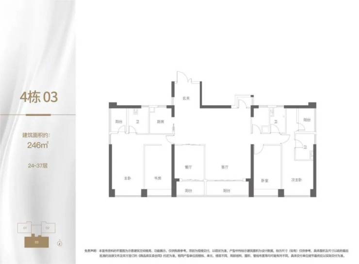 246㎡ 4+1房,单价13.2-13.6万/㎡,总价约3240-3330万。