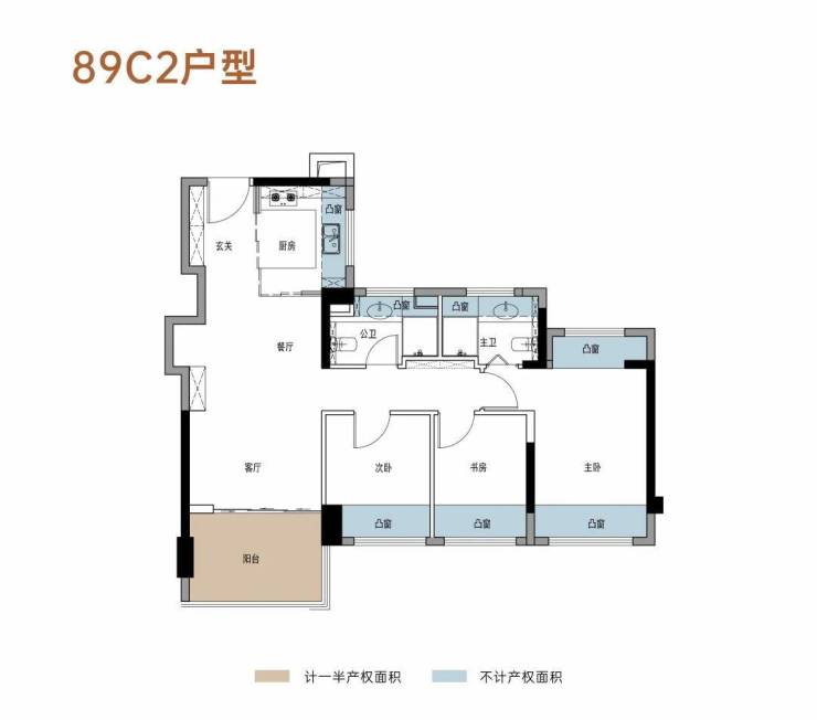 ④给空间以从容:约89-108㎡ 三至四房新规户型,高赠送率+高使用率