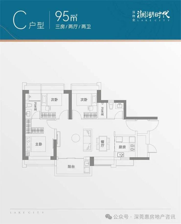 ▎建面约95㎡ 三房两厅两卫