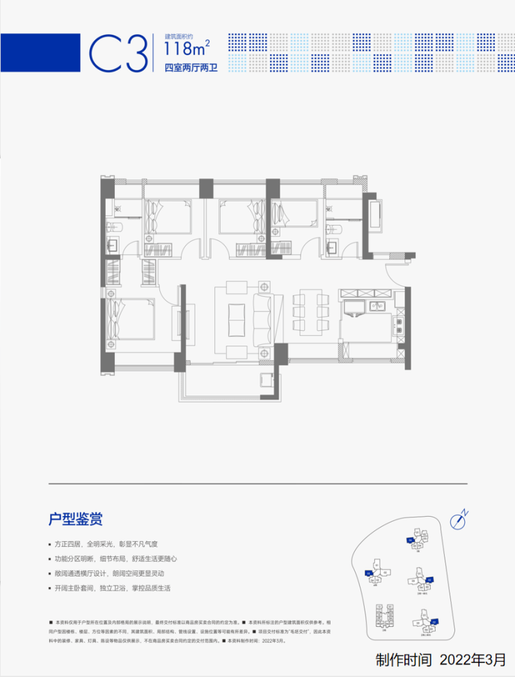 总规划1508户,全部都是商品房,其中1栋2单元3梯5户,其它栋数都是3梯6户设计,地下室有3层,规划停车位1777个,车位占比约1:1.18。