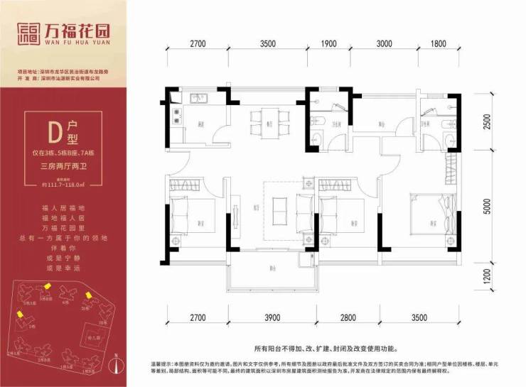 约111.7~118㎡,三房两厅两卫