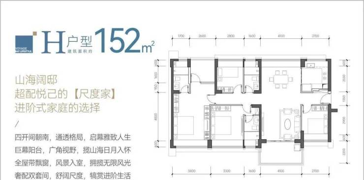 152㎡的5房2厅3卫,仅5栋01户型,设计的是竖厅南北通透格局,餐客厅一体化设计,客厅4.1米开间,五开间朝南,双主卧套间,5个卧室分别做到了主卧20.52㎡/主卧13.53㎡/次卧9.45㎡/次卧8.96㎡/次卧8.32㎡(包含墙体飘窗),都不用搭配飘窗做床,U型厨房,卫生间干湿分离,得房率约:92.01%(包含赠送),阳台主朝西南向。