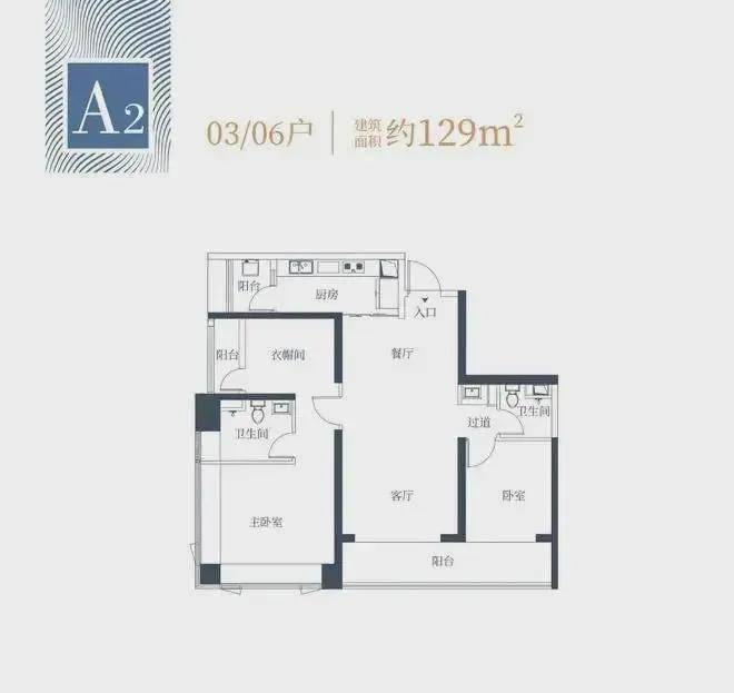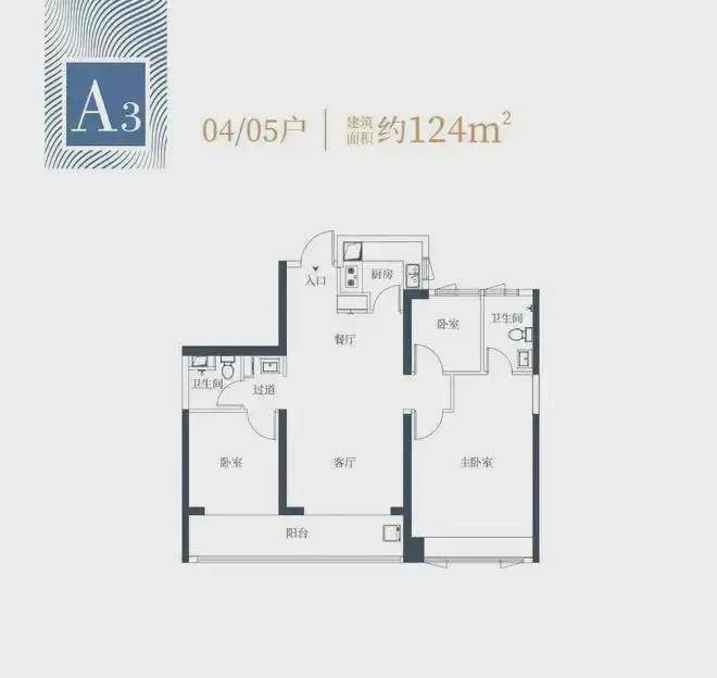 1栋一单元A3户型:面积约为124㎡