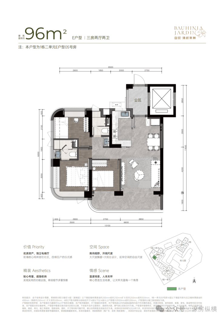 超高质价比,舒适三房:111㎡3房,东南/西南向