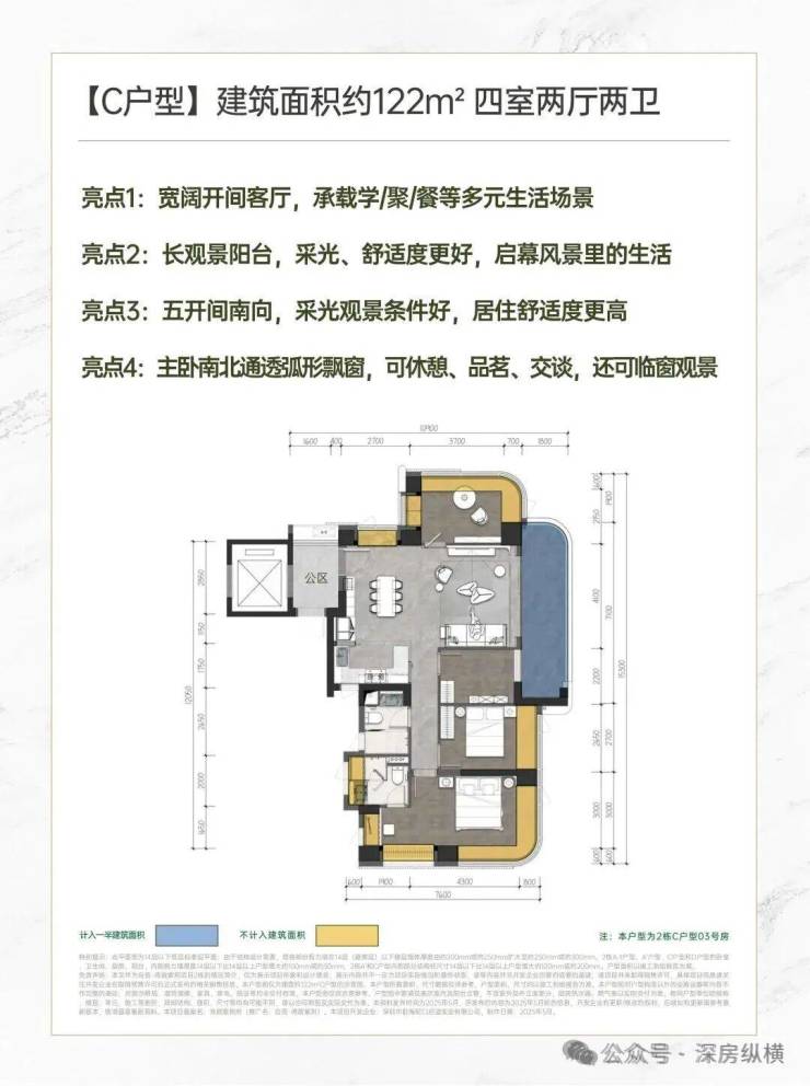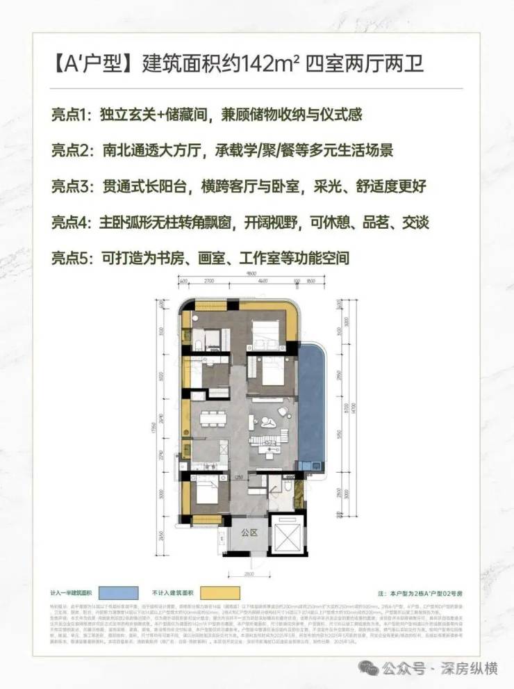 山河海多重景观南北通透:142㎡4房,东南/东北/西南向