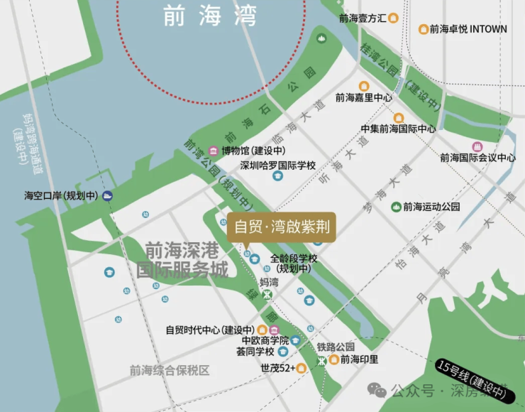 位于前海三湾之一妈湾,背衔大、小南山,享山河海景观、纯粹居住社区,给予目标人群在前海置业的更好生活形态。