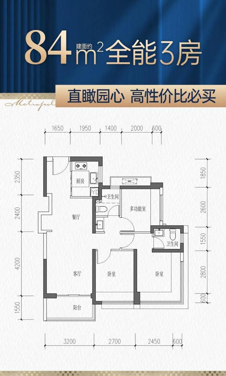 纯板楼设计,二梯二户,外立面部分采用铝板,尽显品质;