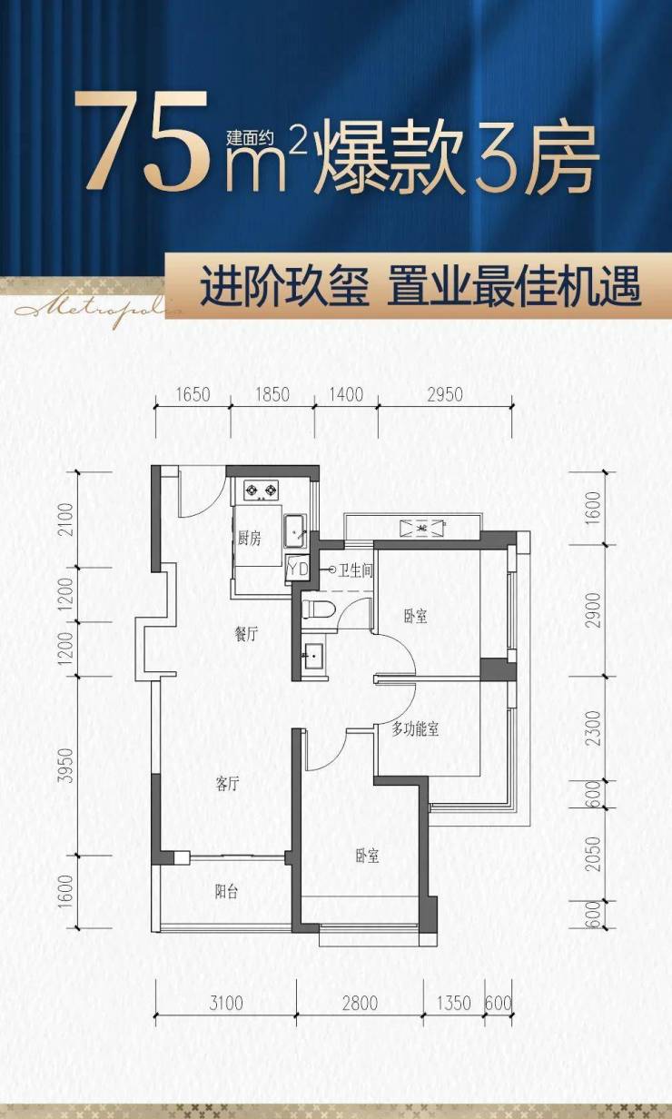 ,设计的是竖厅格局,客厅3.1米开间,LDKB一体化,S墙设计预留冰箱卡槽位,3个卧室分别做到了主卧10.2㎡/次卧8.55㎡/次卧7.95㎡(包含墙体飘窗),U型厨房,卫生间三段式分离,得房率约77%(不含赠送),西南朝向。
