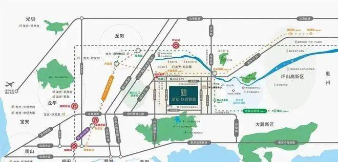 地铁——14号线锦龙站(进入坪山第一站),4站到大运,10站到罗湖,11站到福田(约40分钟),更近市中心。