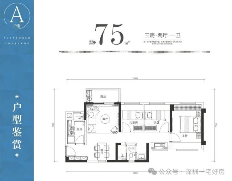 75㎡三房:总价约180万起