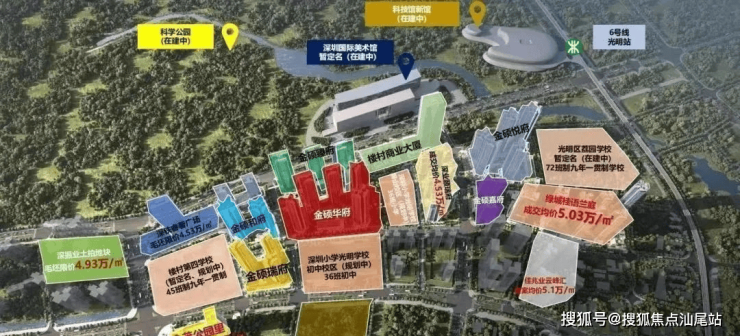 地铁配套:项目距离6号地铁线“光明站”约600米,步行需要11分钟左右,2站到凤凰城站,可以换乘13号线,4站到光明城站,这里可以换乘光明城高铁站/6号地铁线,6站到宝安上屋站,11站到南山西丽留仙洞,14站南山高新园,18站到后海。