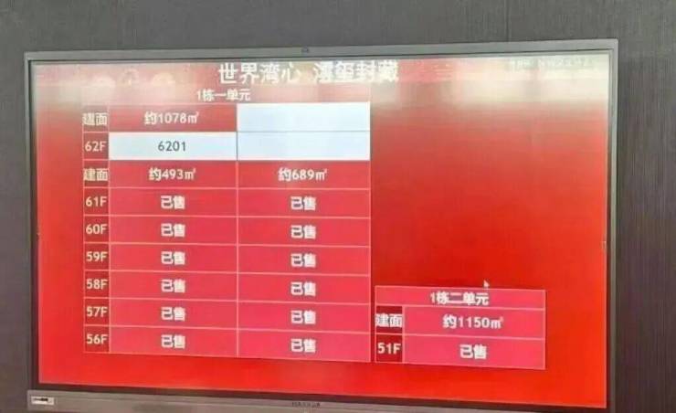 建面约408m²亿元级单位全部售罄,高区户型被一扫而空,目前仅剩余少量低