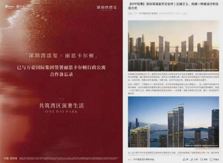 同时,深圳湾澐玺已与万豪国际集团签署丽思卡尔顿行政公寓合作备忘录。这