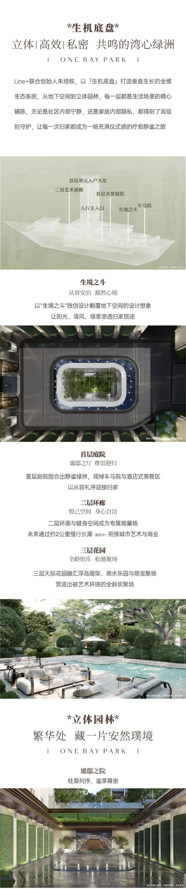 的分层布局:首层静谧水景庭院搭配阔绰车马院与酒店式落客区,强化归家仪