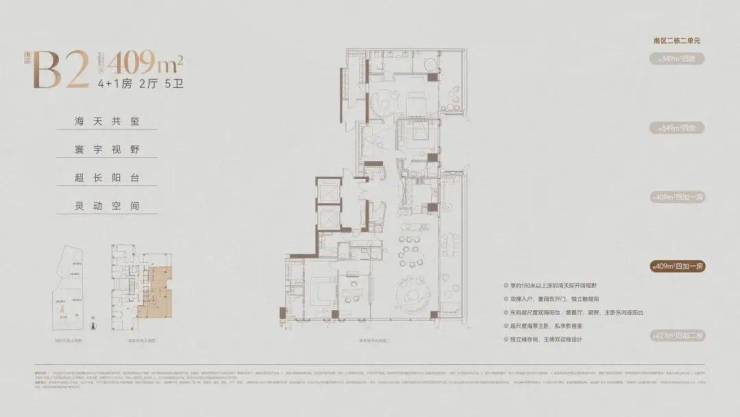此次南区加推的36套高区无敌瞰海产品中,见面约408m²户型的亿元级单位开