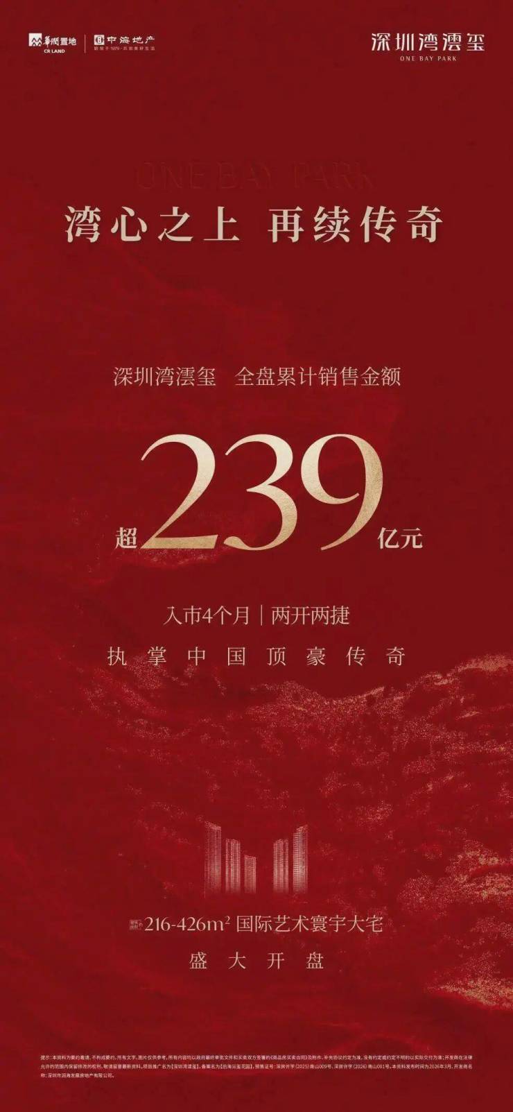 售额已达239亿,而随着项目的持续热罄,深圳湾澐玺最后一栋住宅单位也将预