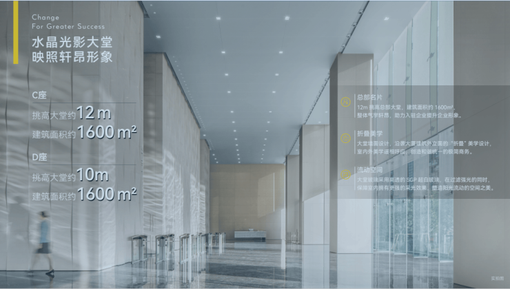 大堂面积及层高 :约1600㎡/约12m ▏ 约1600㎡/约10m