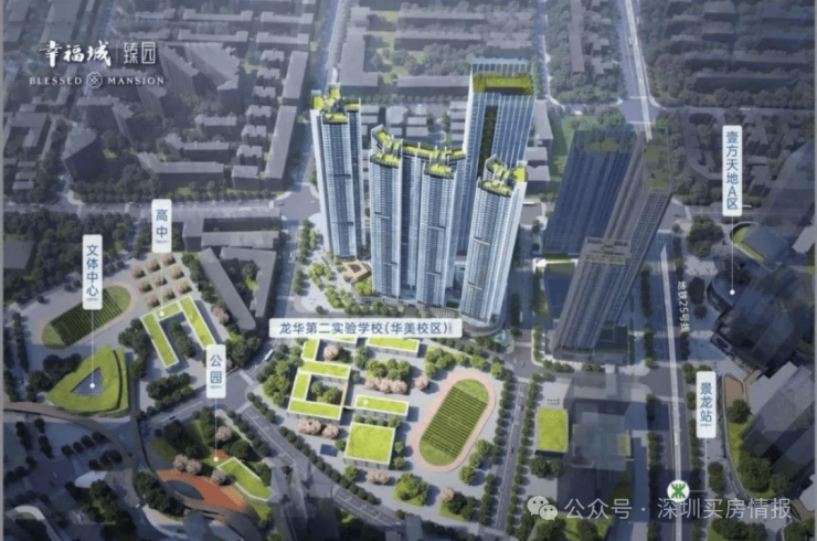 幸福城臻园位于龙华人民路与建设路交汇处西南侧,隶属龙华商业中心城市更新单元北片区。该旧改项目堪称龙华的 “巨无霸”,总体量达 161 万㎡,规模仅次于鸿荣源壹城中心。